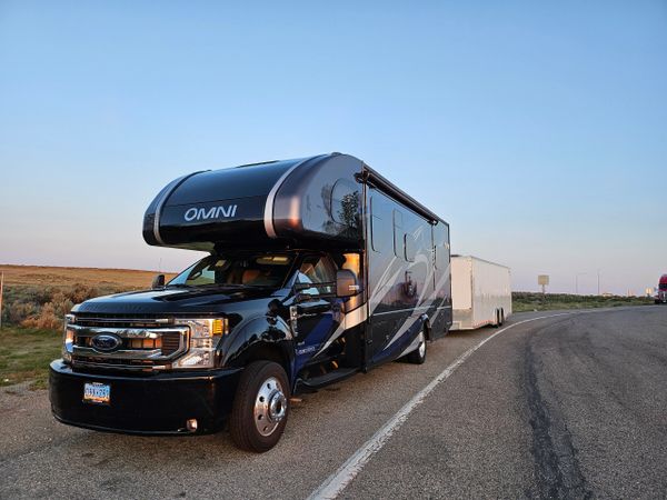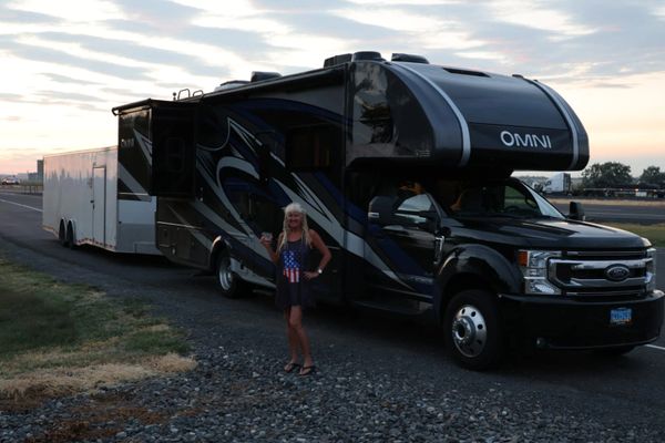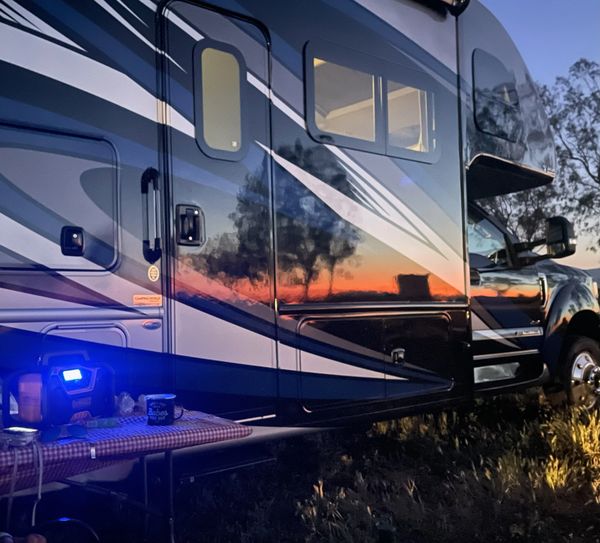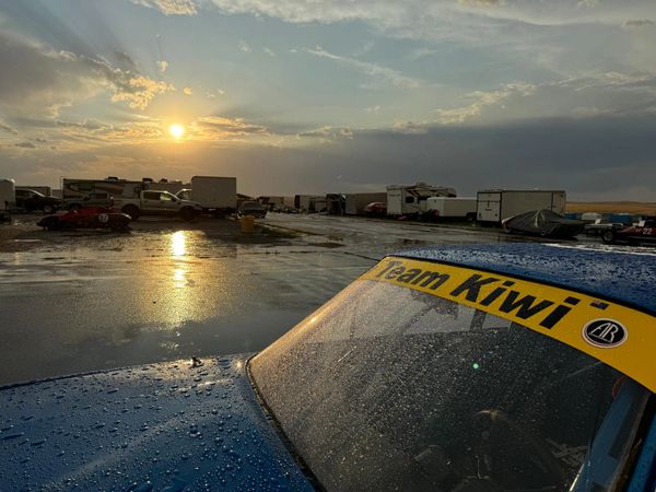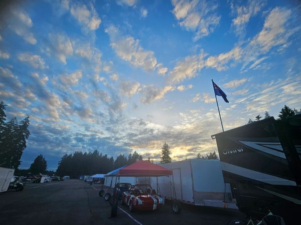 Gorgeous sunset at Spring Mountain Motorsports Ranch - Team Kiwi flag flying high