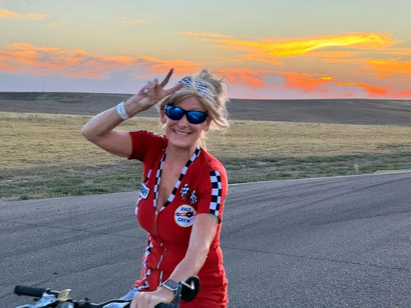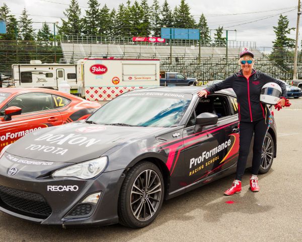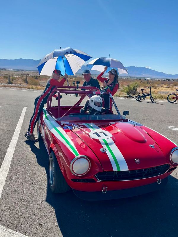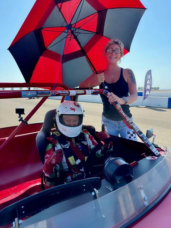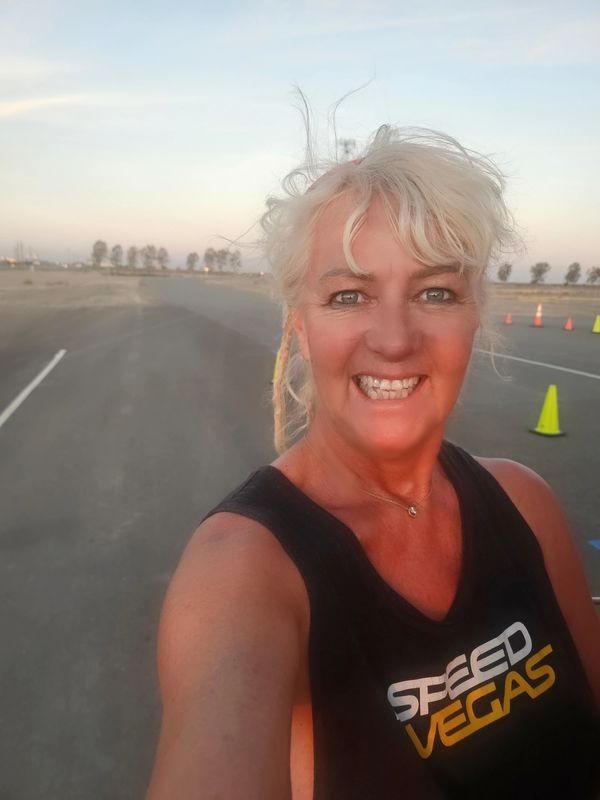 Heather and Brooklyn ready for a track ride as part of the British Auto Club of Las Vegas laps at lunchtime