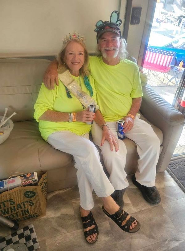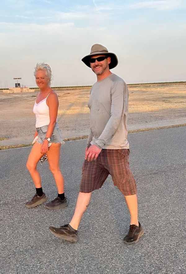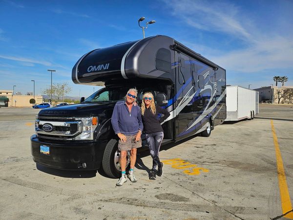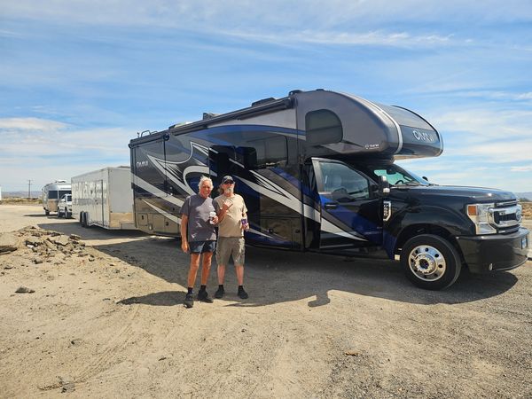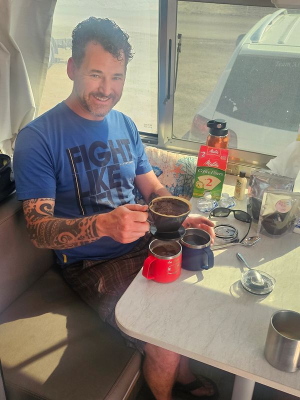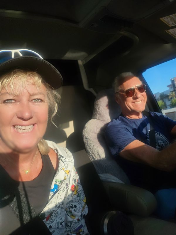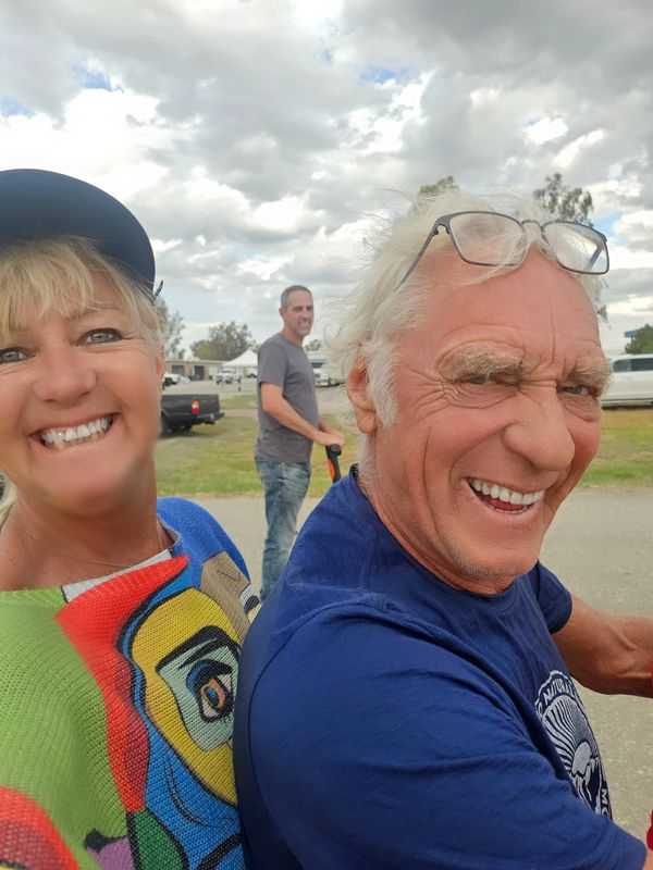 Denie and Mike - on the way to Willow Springs. Stopping off for a coffee in Baker.