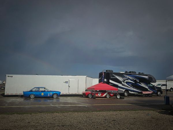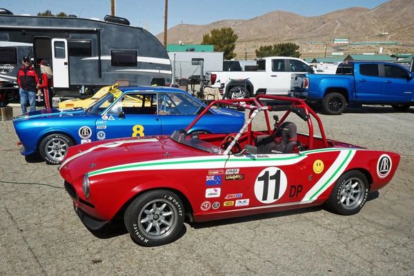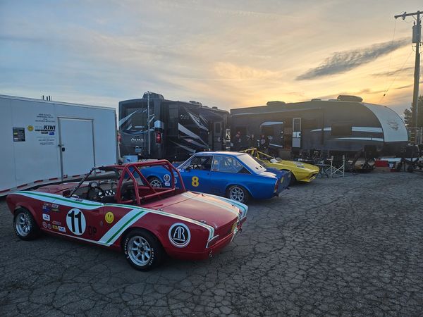 Two gorgeous Italian cars at Team Kiwi Classic Racing's pit, Spring Mountain