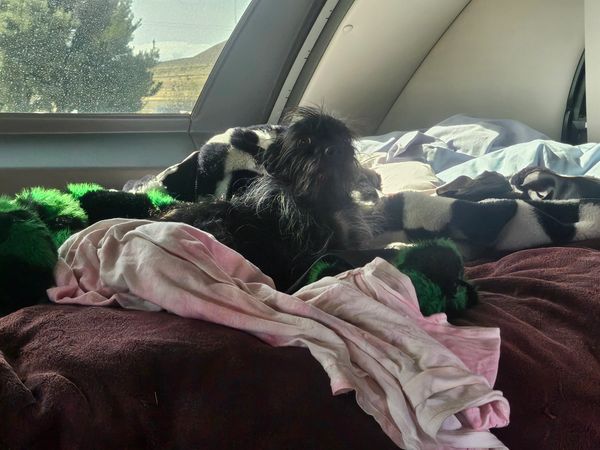 Denie chillaxing after a 20 hour drive from Las Vegas to Kent, WA