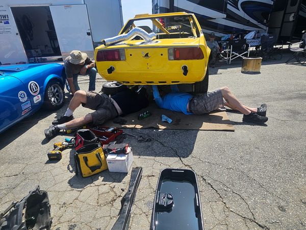 Mark and Alan working on Mark's X19. Changing the transmission and clutch at the track! Now that's dedication!!!!!