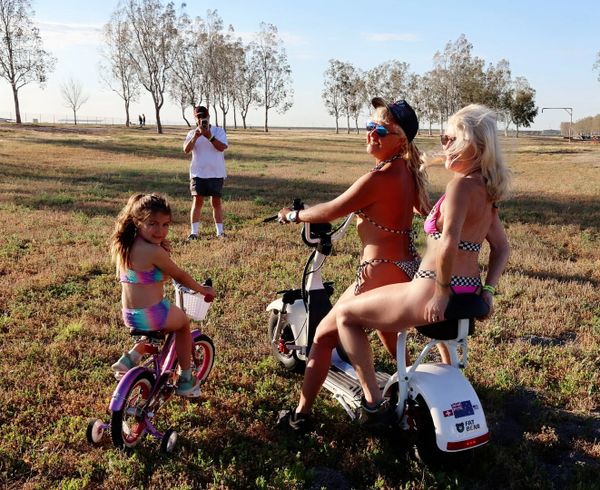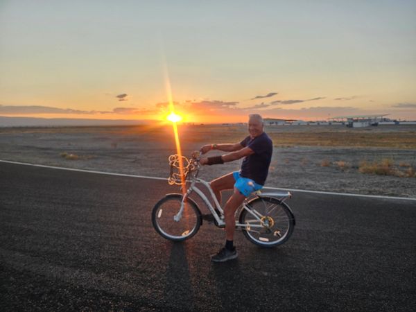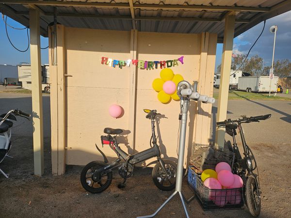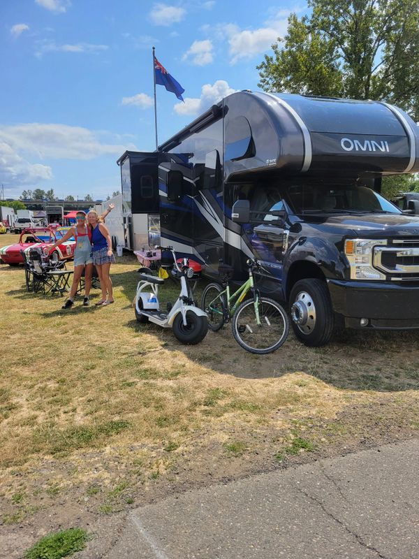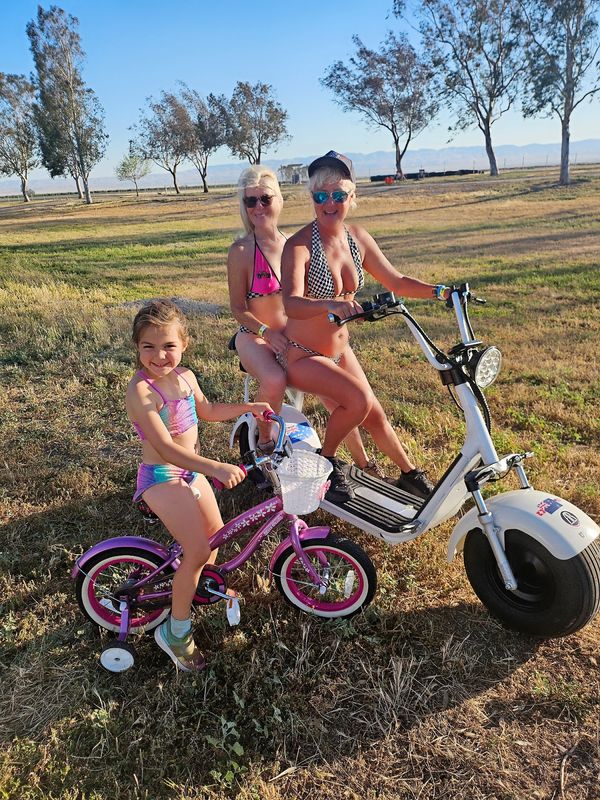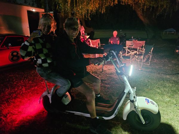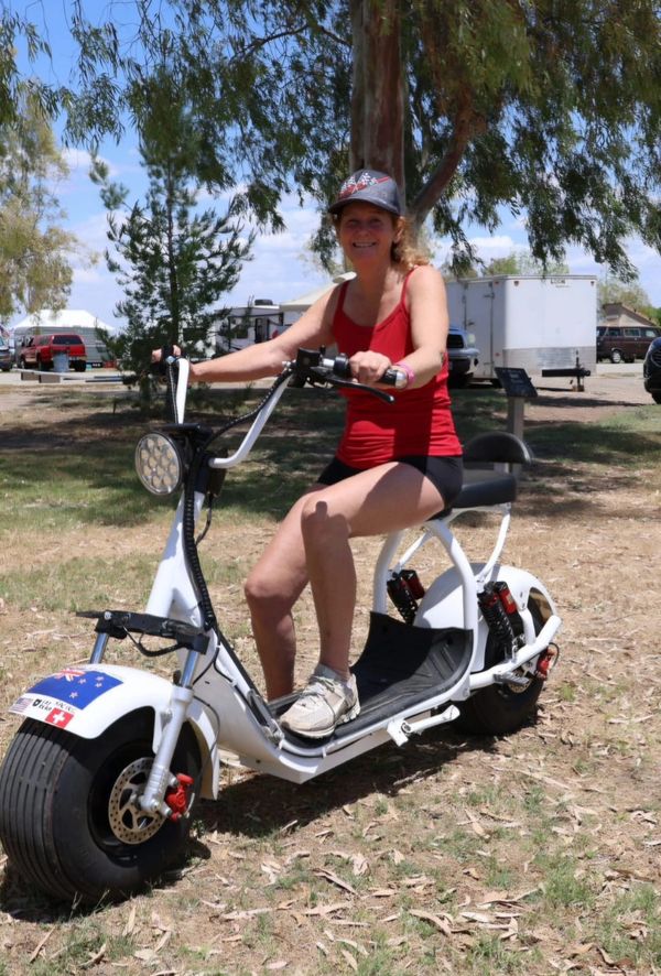 Denie and Shelley off to get registered for race weekend. Love our Fat Bear Scooter!