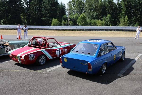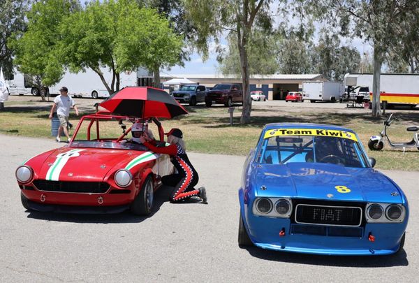 #11 Shelley's 1967 Fiat 124 Spider and #8 Denie's 124 Coupe