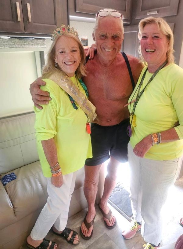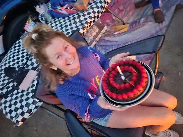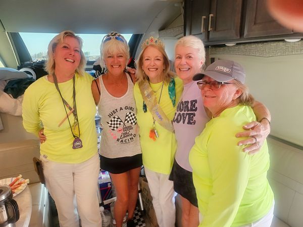 Quite the gathering at Team Kiwi's pit to celebrate Candye's birthday