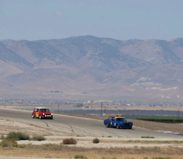 Battling to keep ahead of Dennis Racine in the red Mini. Sunday's race.
