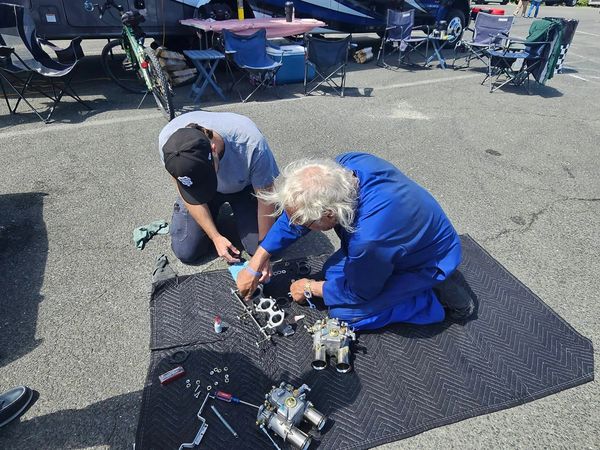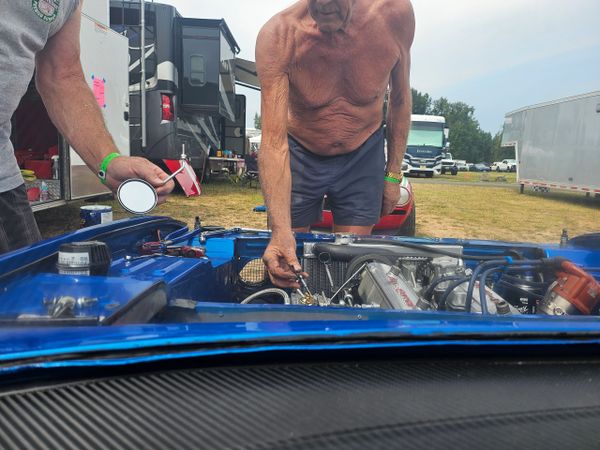 Denie had an issue with his throttle sticking during qualifying so he and Julie worked on it before Race #1
