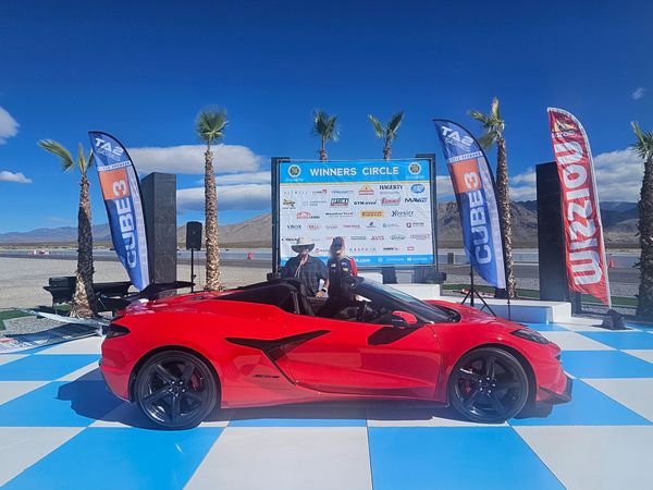 Tom & Heather took their new corvette that they won out for a few laps around Spring Mountain at lunchtime on Saturday