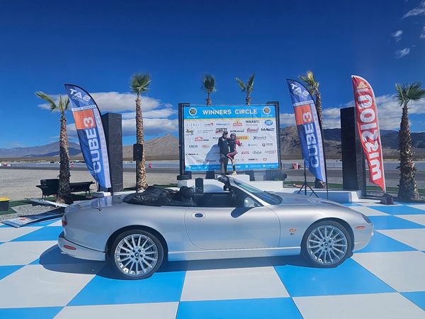 Photo op for Mike and his jag after doing a few laps around the track at lunchtime as part of the British Auto Club of Las Vegas event
