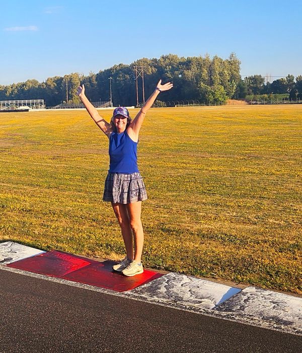 Gold medal for Shelley in Sunday's Feature Flag Race. First in her Group!