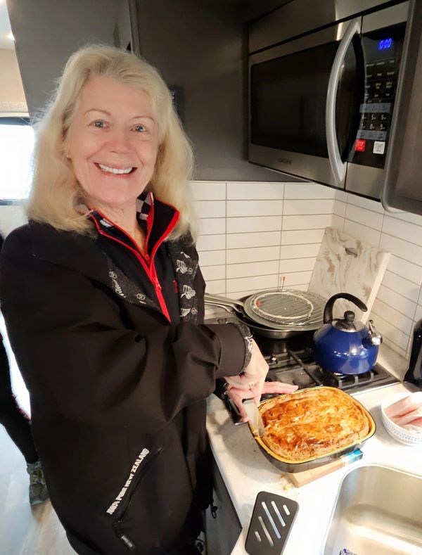 Heather arrived with freshly baked bacon and egg pie. And Brooklyn made Kiwi sausage roll bites for the potluck - yummy!