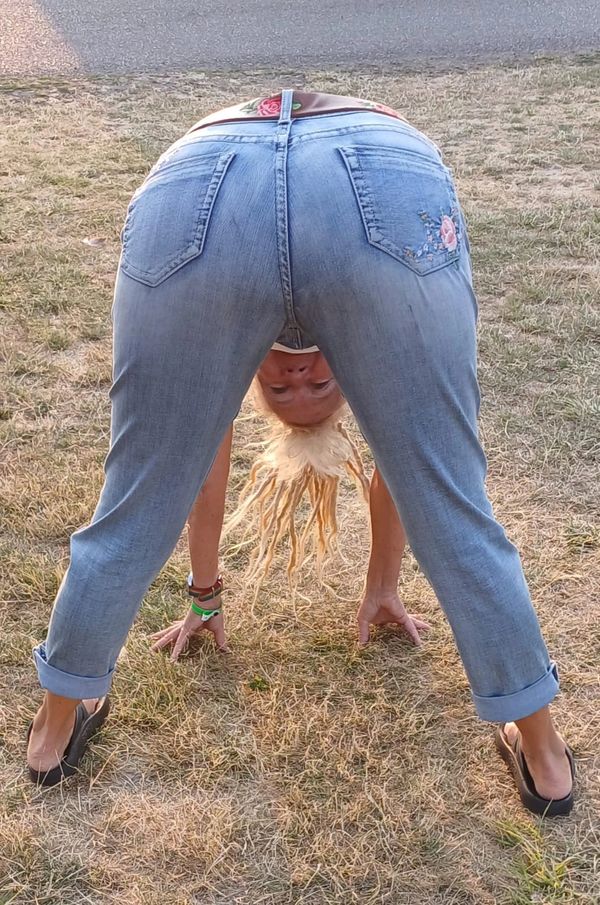 Shelley sad! Realizing why it felt like her ass was dragging on the track... it was!