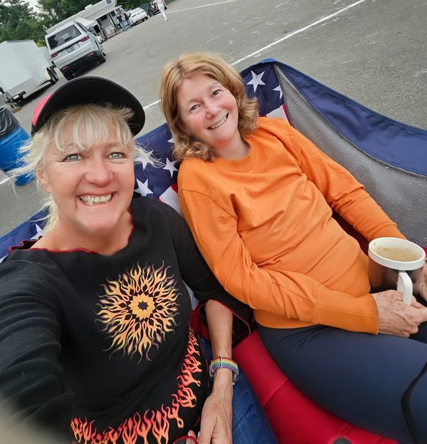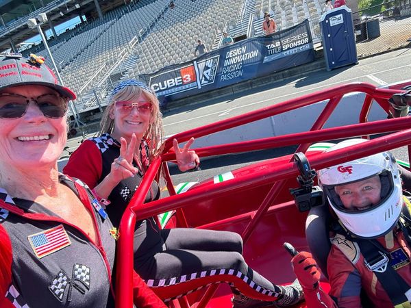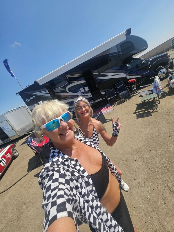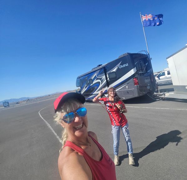 Team Kiwi Shelley & Denie - still smiling even though our cars both broke. Love being at the race track! Better luck next time!