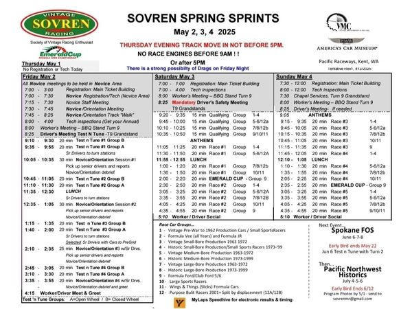 We are excited to be part of SOVREN (Society of Vintage Racing Enthusiasts), SVRA (Sportswear Vintage Racing Association), CSRG (Classic Sports Racing Group) and to race our classic cars in California, Nevada and the Pacific NW. Come join us and support Team Kiwi Classic Racing!